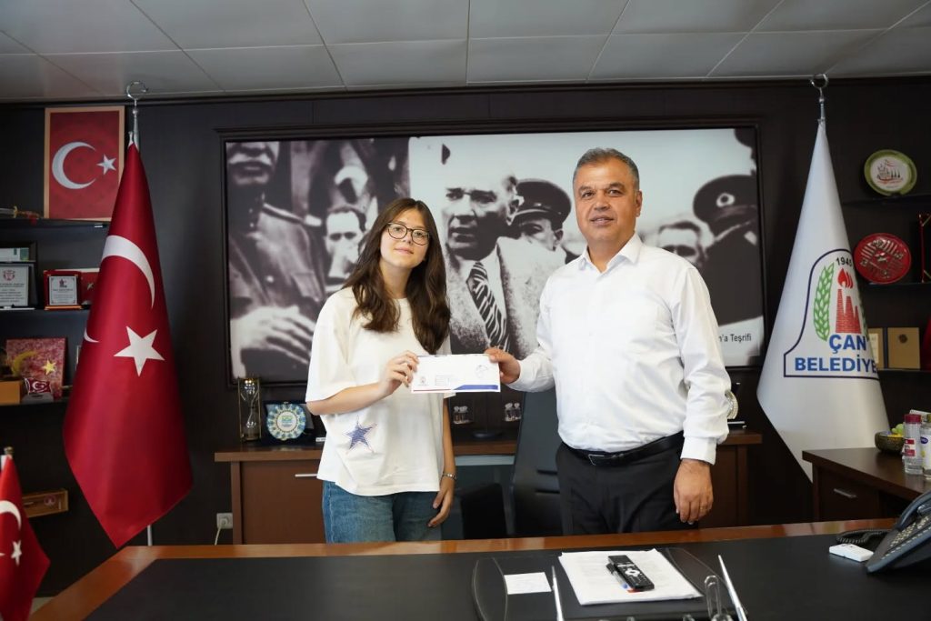 Esra İclal Doğan’ı makamında ağırlayan Belediye Başkanımız Arslan, “LGS’de 500 tam puan alarak Türkiye birincisi olan 23 Eylül Ortaokulu öğrencisi Esra İclal Doğan’ı kutluyorum.